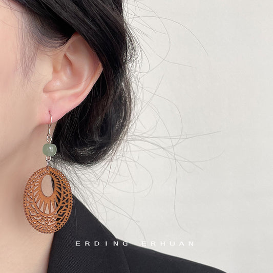 C廠【3719】新中式東陵玉木質手工藝設計感古風耳環女民族風文藝復古耳環女 24.03-4