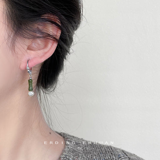 C廠【3731】新中式不對稱設計感淡水珍珠天然石竹節耳扣氣質手工耳飾 24.03-4