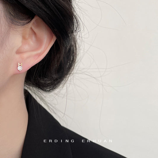 C廠【3782】迷你版小巧個性字母微鑲鋯石H時尚通勤百搭鍍14K銀針耳環 24.04-1