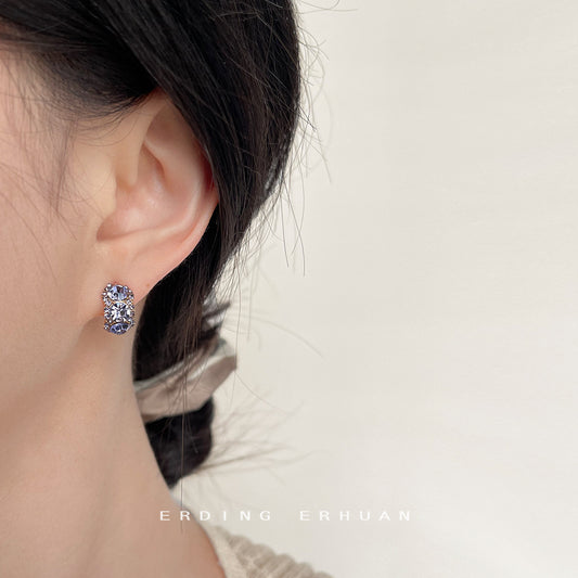 C廠【3819】鑲鑽很閃很亮 個性ins網紅簡約通勤百搭紫色幾何半彎耳環新款耳飾 24.04-2