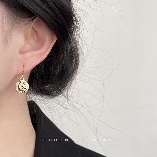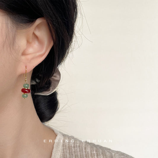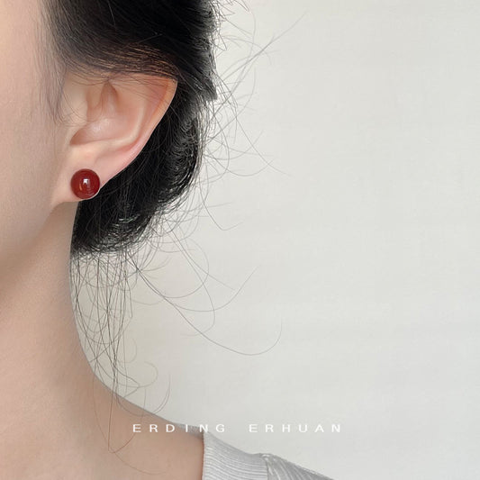 C廠【3825】新中式文藝復古天然石紅瑪瑙圓形幾何耳環氣質簡約通勤耳環女 24.06-3