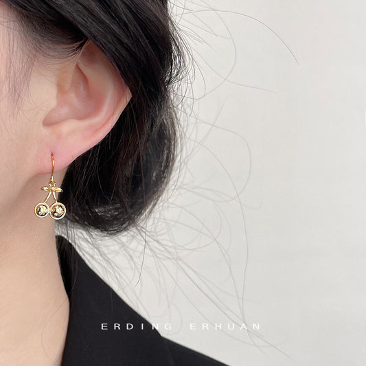 C廠【3785】升級版鍍18K真金加厚微鑲鋯石迷你版小巧可愛櫻桃通勤耳環女耳環 24.04-2