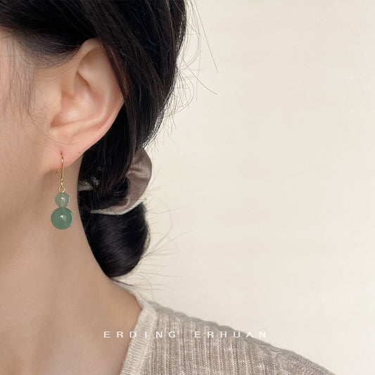 C廠【3804】新中式清新小葫蘆手工藝設計感東陵玉天然石手工耳環女原創耳環 24.05-3