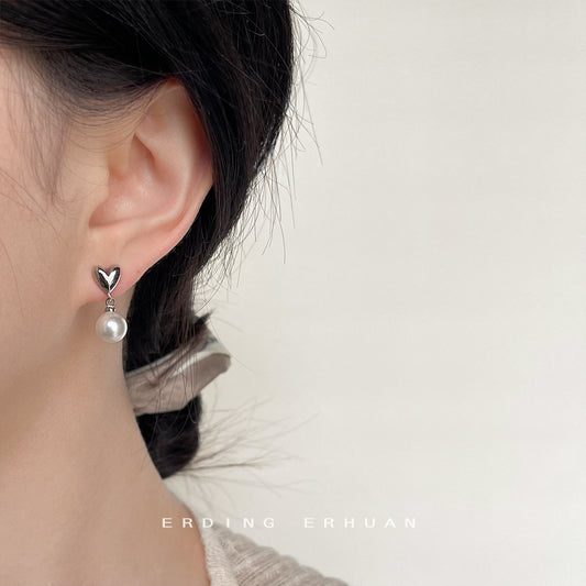 C廠【3820-3821】施家珍珠品質法式輕奢日常通勤高級感心形耳環簡約新款潮耳環 24.04-2