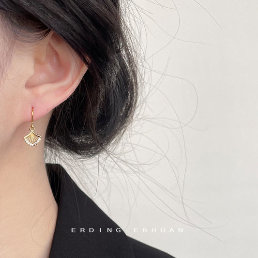 C廠【3787】升級版加厚電鍍18K微鑲鋯石銀杏葉迷你小巧輕奢風耳飾耳環女 24.04-2