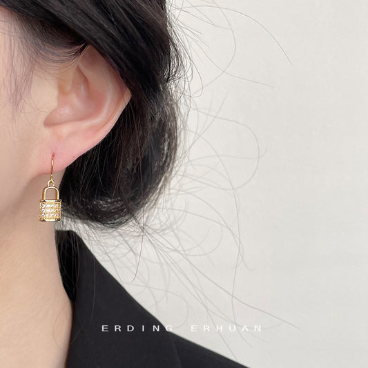 C廠【3786】升級版電鍍18K不對稱設計感個性輕奢風鎖與鑰匙小巧耳環 24.04-2