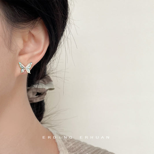 C廠【3822-3823】森系小清新可愛甜美滴油小蝴蝶耳環鍍14K優雅氣質耳飾飾品女 24.04-2