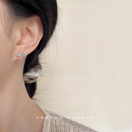 C廠【3802】個性ins微鑲鋯石創意迷你版小巧小飛機耳環新潮2024網紅耳飾 24.04-2