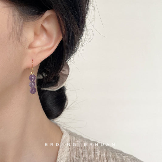 C廠【3800】薰衣草紫晶石手工藝設計感旅遊景點耳環女新款2024年森系仙田園耳環 24.05-3