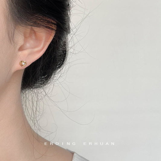 C廠【3783】日常通勤款迷你版小巧百搭愛心小耳環鍍14K銀針耳環飾品 24.04-2