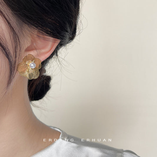 C廠【3960】甜美個性鏤空花朵電鍍14K耳飾女2024新款銀針時尚高級感耳環 24.05-3
