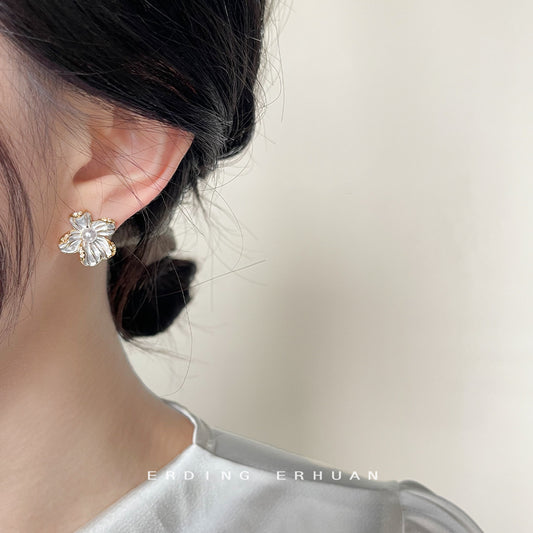 C廠【3950】鑲嵌鋯石輕奢風高級感花朵銀針耳飾氣質優雅設計師款珍珠耳環 24.05-2