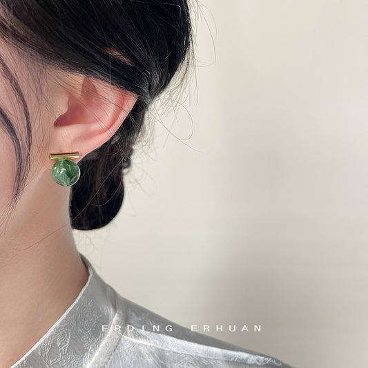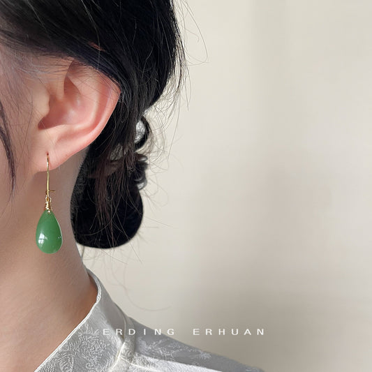 C廠【3954】夏日新款手工設計感玻璃玉石綠色水滴復古宮廷新款耳飾 24.05-1