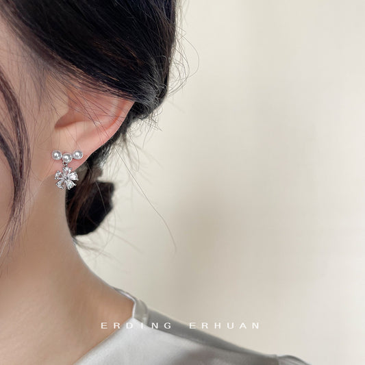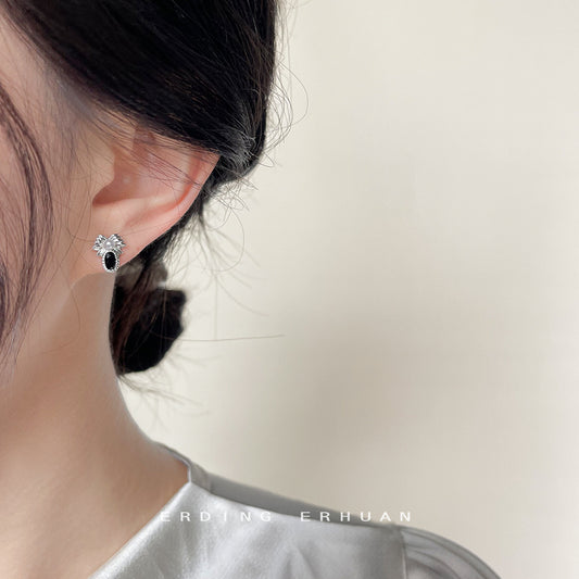 C廠【3957】法式小清新蝴蝶結鑲嵌鋯石簡約日常通勤銀針耳環迷你版耳飾 24.05-1
