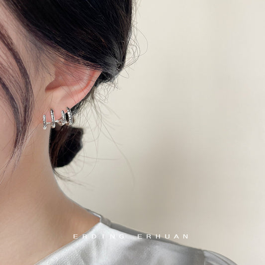 C廠【3966】上耳效果很好~像打了一排耳洞幾何線銀針個性甜酷風ins耳環耳環 24.05-2