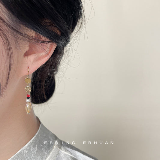 C廠【3962】新中式文藝復古個性風潮原創設計長款流蘇瑪瑙耳環 24.05-4