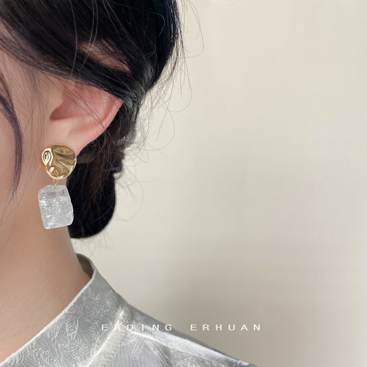 C廠【3952】白水晶天然石時尚通勤高級感鍍14K手工藝新款耳環氣質優雅耳環 24.05-3