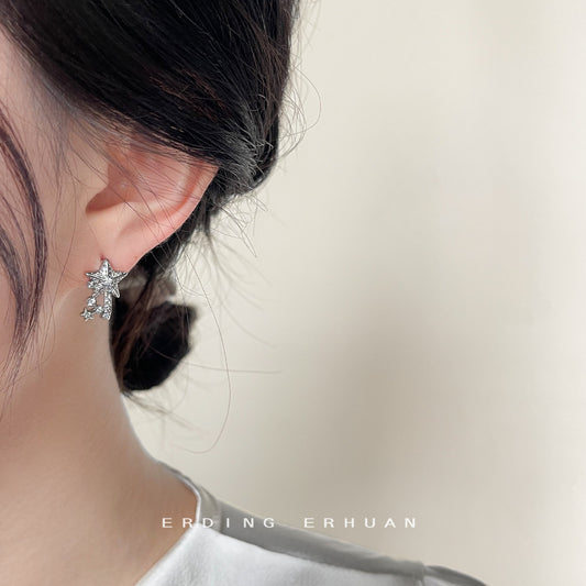 C廠【3953】微鑲鋯石設計師款流星銀針耳環氣質簡約個性ins小眾耳飾 24.05-1
