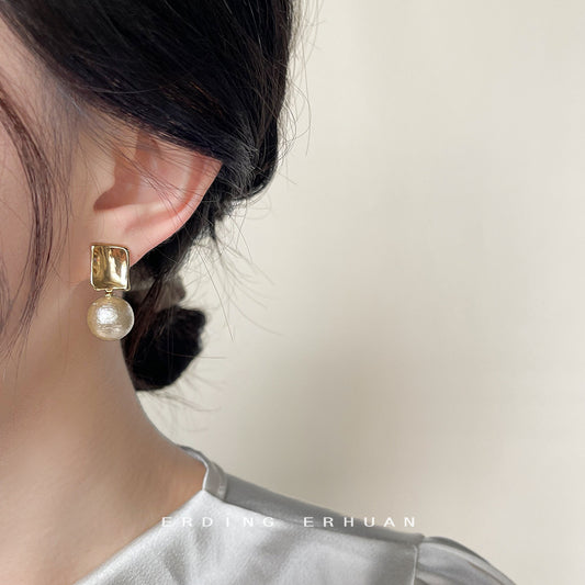 C廠【3964】棉花珍珠~輕奢風高級感電鍍14K設計師款簡約氣質銀針耳飾 24.05-1