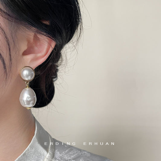 C廠【3947】略誇張高級感鍍14K簡約氣質復古重工樹脂珍珠耳環女新款港風耳環 24.05-3
