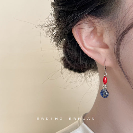 C廠【4141】全新中式青花碎石手工藝原創設計耳環女2024年國潮新款耳環小飾品 24.06-1