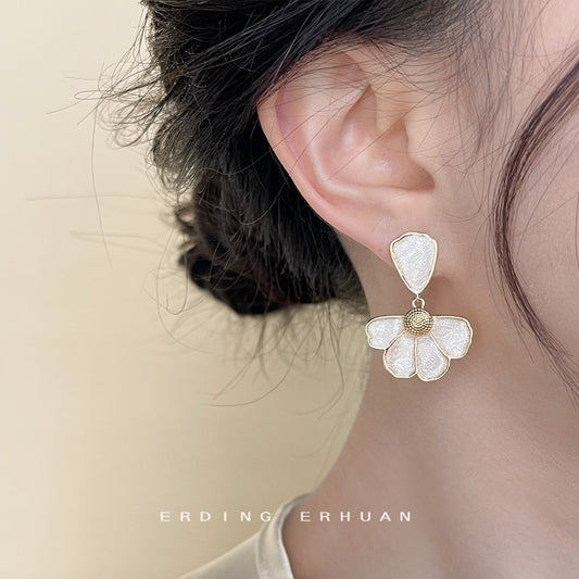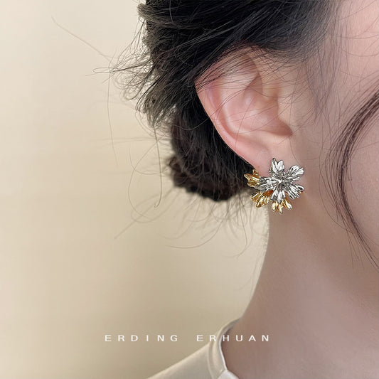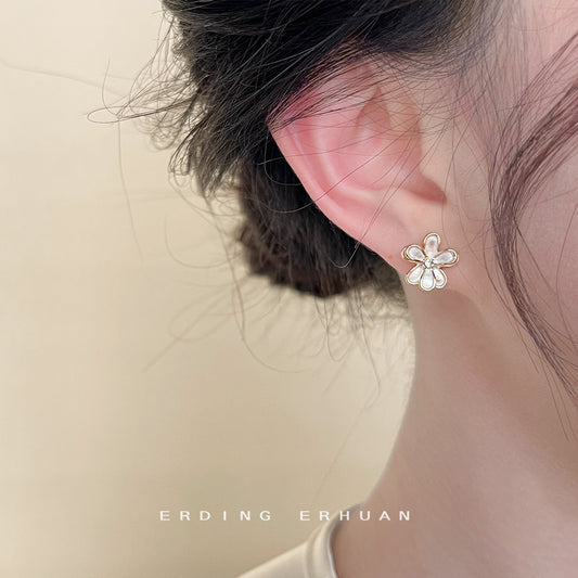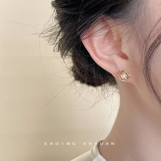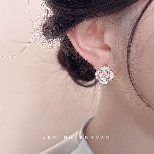 C廠【4120】森系清新甜美滴油可愛山茶花銀針鍍14K耳環氣質優雅耳飾日韓飾品 24.05-5