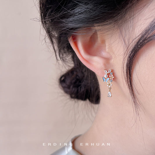 C廠【4113】微鑲鋯石實物很美超仙蝴蝶夏日新款2024年森系花朵耳飾女耳環耳環 24.06-1
