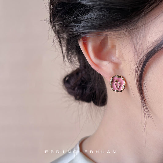 C廠【4114】夏日清新甜美手工滴油鬱金香鍍14K銀針耳環氣質優雅通勤耳飾 24.05-3