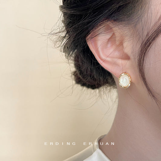 C廠【4129】時尚通勤高級感輕奢風鍍14K橢圓幾何百搭小耳環氣質優雅耳飾 24.06-1