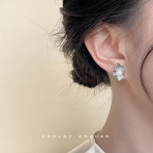 C廠【4136】法式復古淡水珍珠設計師款小眾個性網紅不規則花朵耳飾女 24.06-1