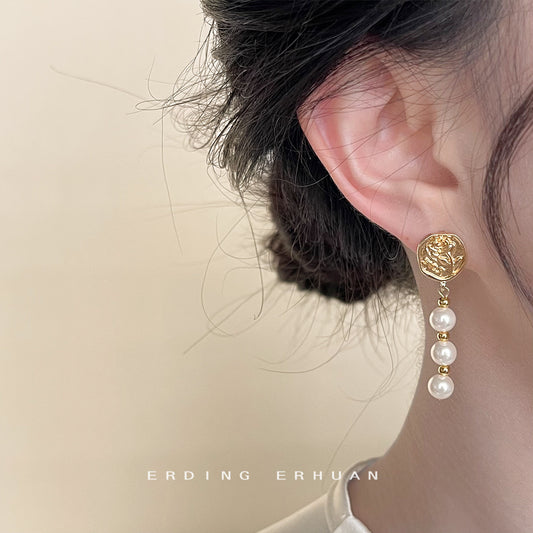C廠【4134】設計師款高級感時尚通勤簡約珍珠長款流蘇鍍14K耳飾 24.06-1