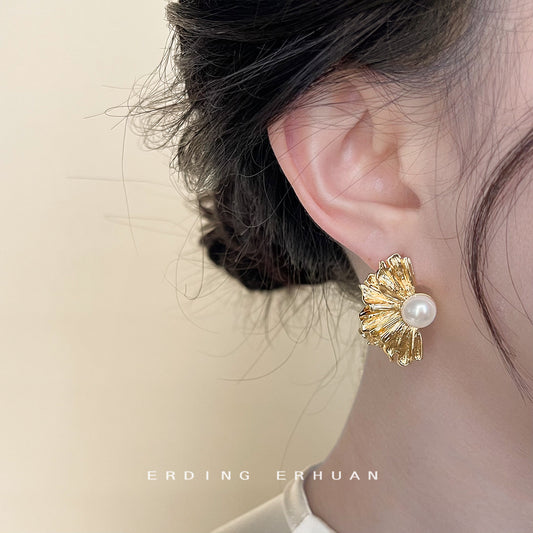 C廠【4117】藝術氣息不規則設計感新中式荷葉紋理新款耳環女氣質簡約耳飾 24.06-1