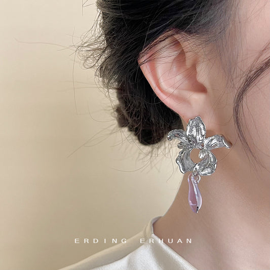 C廠【4118】鳶尾花設計師款實物略大美人氣質優雅高級感時尚銀針耳飾耳環 24.05-5