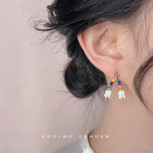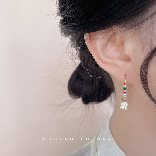 C廠【4183】原創設計~清新甜美手工藝設計感花朵耳環女氣質優雅鈴蘭花耳環 24.05-5