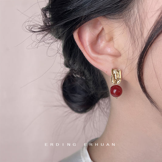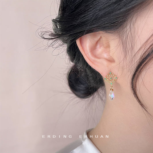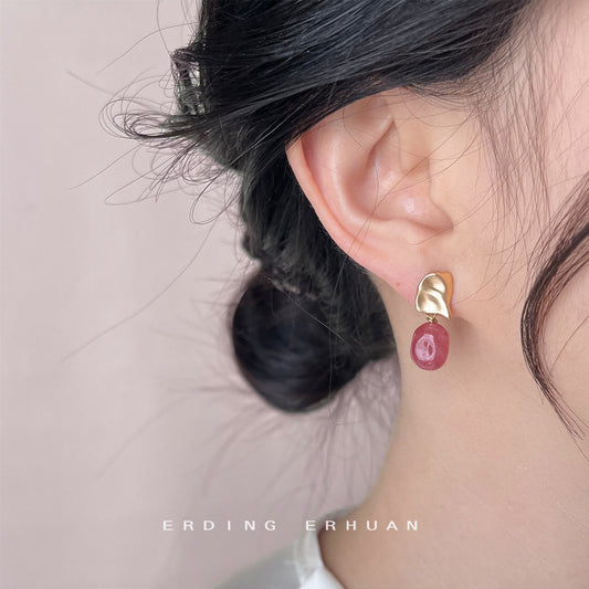 C廠【4192】原創設計新中式手工藝設計感天然石東陵玉耳環小眾網紅新款耳環飾品 24.05-5