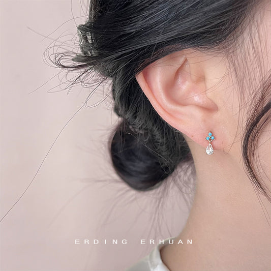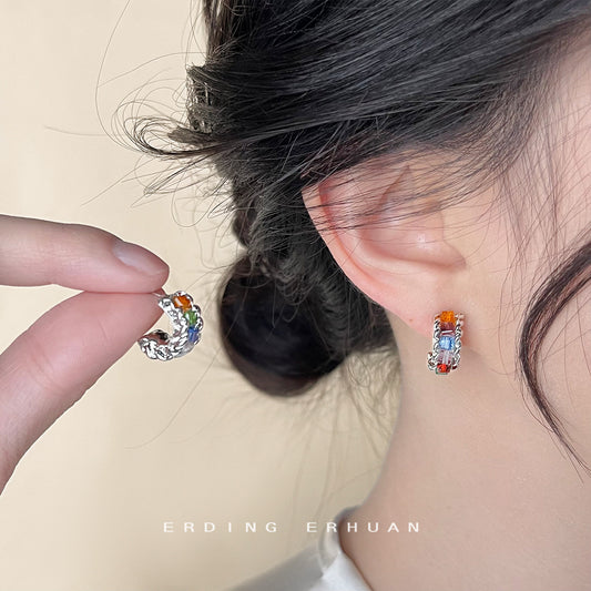 C廠【4221】甜酷風個性ins玻璃水晶設計感小眾新款銀針耳飾女氣質甜美彩耳環 24.06-2