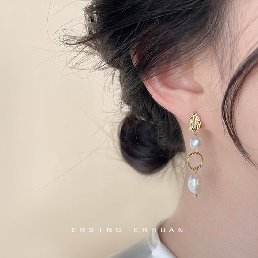 C廠【4219】巴洛克異形淡水珍珠手工設計感文藝復古長款流蘇耳飾新款耳環 24.08-2