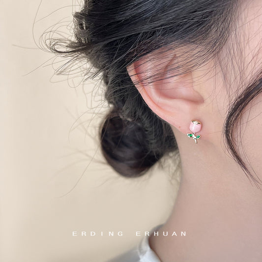 C廠【4215】小巧清新鍍14K甜美日韓簡約滴油玫瑰花通勤夏日配件耳環耳環 24.06-2