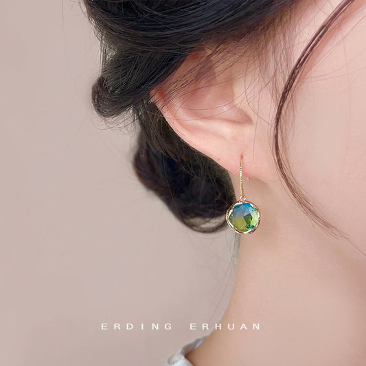 C廠【4184】法式文藝復古漸層玻璃水晶幾何手工耳飾氣質手工藝設計感輕奢耳環 24.05-5