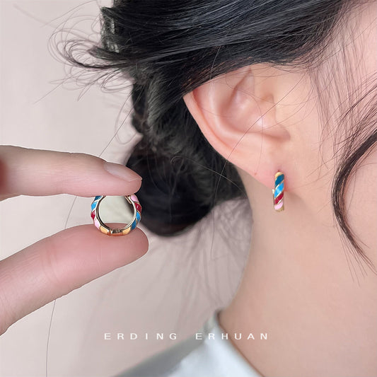 C廠【4188】夏日小清新七彩滴油圓形幾何甜美耳扣女氣質簡約通勤日常佩戴耳飾 24.05-5