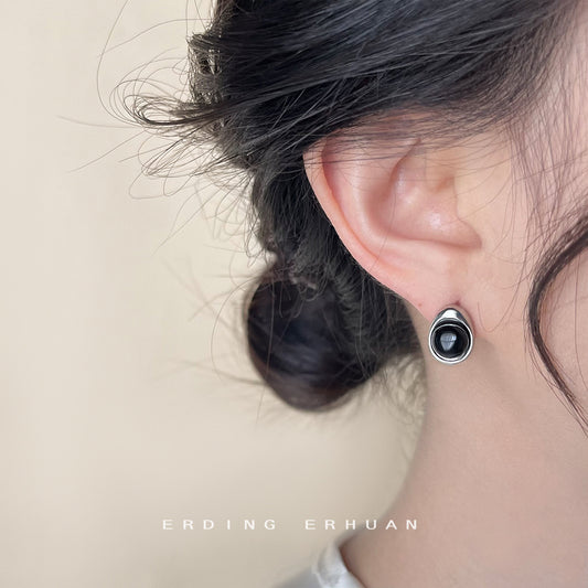 C廠【4240】個性冷淡風黑瑪瑙幾何異形銀針耳環ins網紅通勤百搭時尚耳飾女 24.06-4