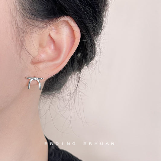 C廠【4247】通勤百搭甜簡約輕奢風可愛蝴蝶結立體小耳環氣質優雅耳環飾品 24.12-3