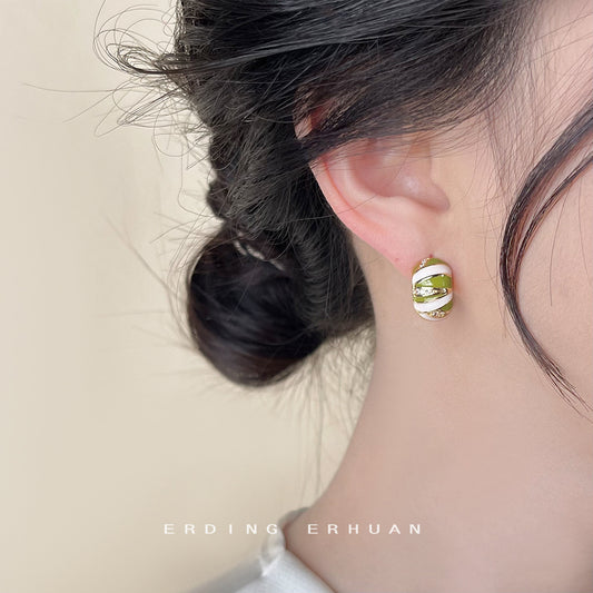C廠【4231】微鑲鋯石鍍14K簡約通勤夏日新款滴油幾何日韓耳飾女甜美綠色耳環 24.06-2