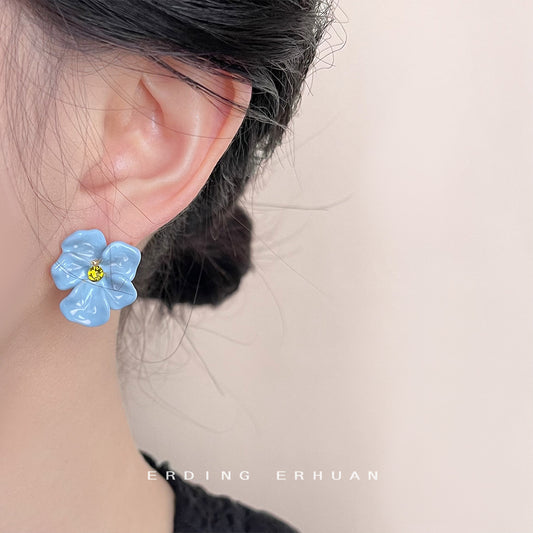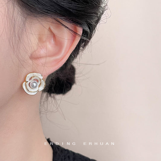 C廠【4306】清新甜美琺瑯滴釉質感鏤空茶花耳環飾品氣質優雅簡約耳飾 24.07-4