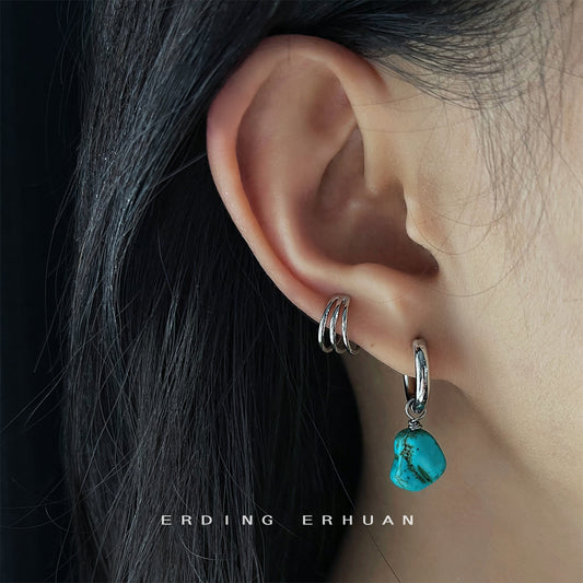 C廠【4307】原創設計感民族風手工藝合成綠松石文藝復古不規則異形耳環耳環 24.06-2