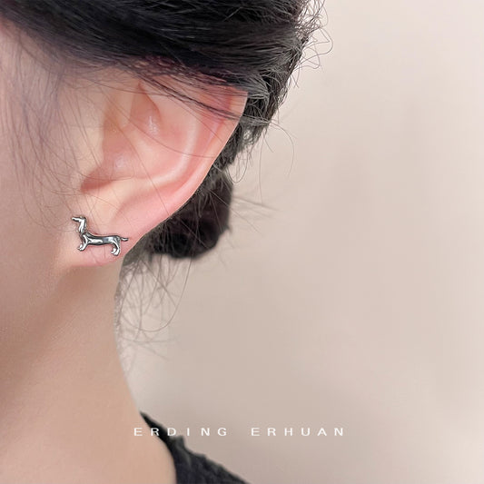 C廠【4301】灰常可愛的臘腸犬小耳環個性ins設計師款小眾2024年新款耳環 24.06-3