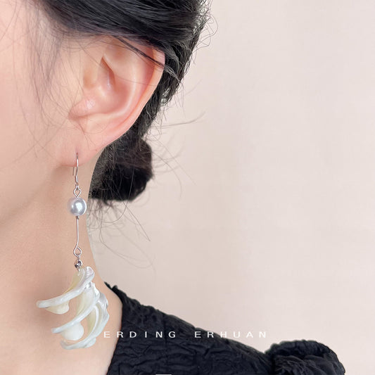 C廠【4300】真貝殼手工設計感長款流蘇設計師耳環氣質甜美度假風耳飾 24.06-4