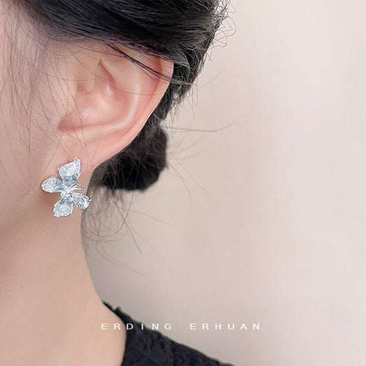 C廠【4298】微鑲鋯石玻璃水晶漸變色蝴蝶耳飾女氣質優雅甜美森系超仙耳環耳環 24.06-2