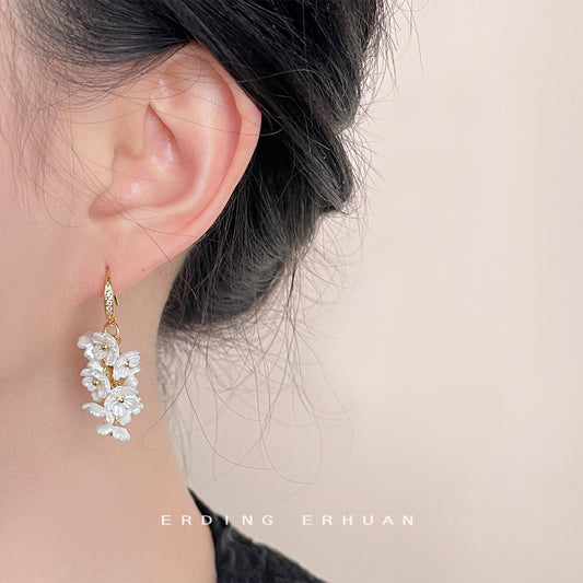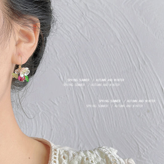 C廠【4297】森系超仙甜美花朵流蘇手工設計微鑲鋯石鍍14K耳環女氣質優雅耳環 24.06-3