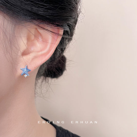 C廠【4299】設計師款~不對稱個性ins甜酷風海星與水母銀色耳環小眾網紅耳飾女 24.06-2